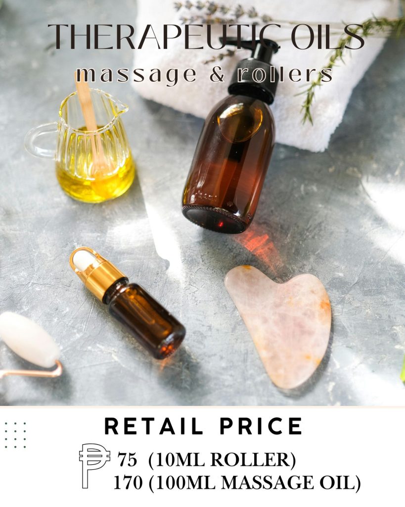 Massage Oils & Rollers are crafted from high-quality sunflower oil from the Philippines and essential oil fragrances from the UK.